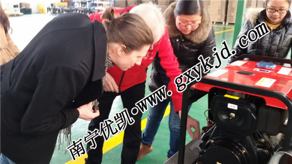 2015年3月05日,南寧銷售分公司的德國客戶到江蘇總廠參觀,總廠外貿部同事和經理在生產間接待了客戶,并對客戶提出的產品性能問題給予了一一解答。參觀生產間后,雙方在會議室進行了商談,客戶對我們廠的產品性能和公司資質非常滿意,和我們簽下合同,訂購了5臺玉柴發(fā)電機組及10臺小型柴油發(fā)電機組,如果首批產品達到客戶預期的質量,會和我公司長期合作! 以下為德國來廠相關圖片