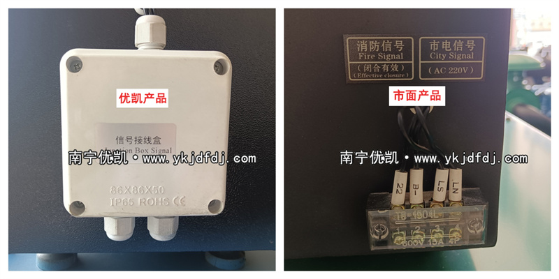 優(yōu)凱動力生產(chǎn)的柴油發(fā)電機組配置自啟動控制系統(tǒng),液晶顯示屏側邊的市電信號優(yōu)凱動力做了升級優(yōu)化,加了保護罩,防雨防曬,進一步保護接線頭,增加安全性,防止漏電。
